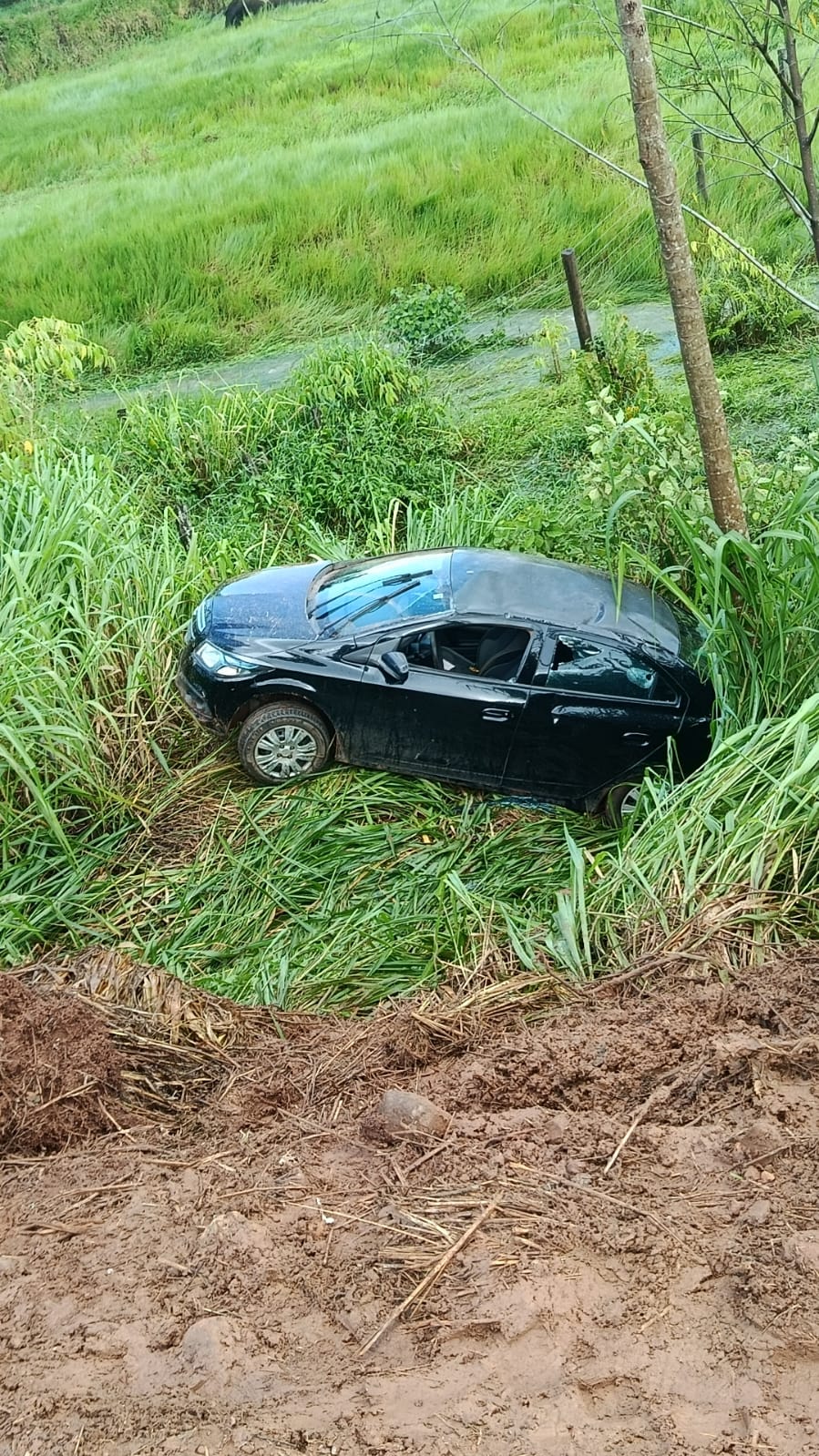 Desta vez, um veículo de passeio perdeu o controle direcional, atravessou a área de planagem lateral e parou em uma ribanceira. O impacto causou avarias significativas na estrutura do automóvel, compatíveis com a saída brusca de pista.