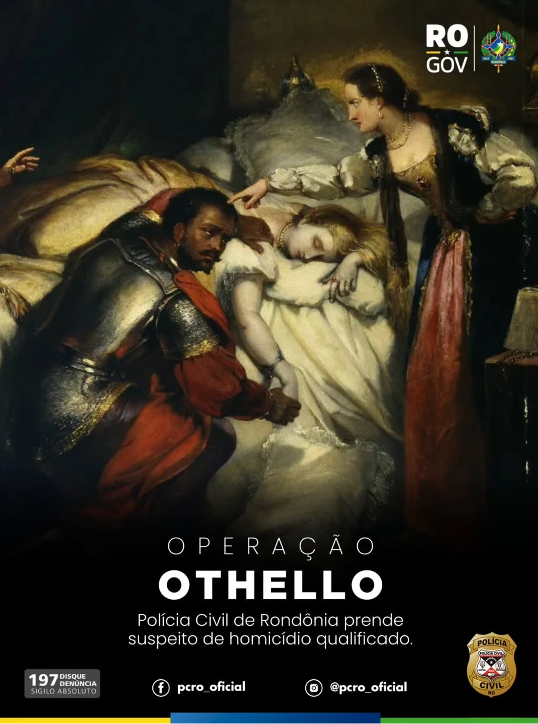 O nome da operação, OTHELLO, faz alusão ao ciúme patológico, que, conforme indicam os elementos investigativos, teria sido o fator determinante para a prática do crime, em referência à tragédia clássica de William Shakespeare, cujo enredo retrata as consequências destrutivas desse tipo de sentimento.