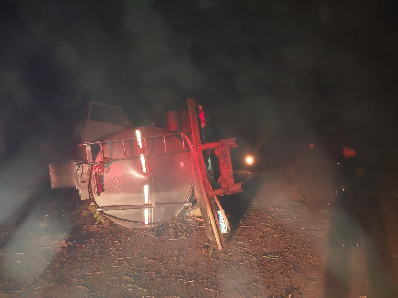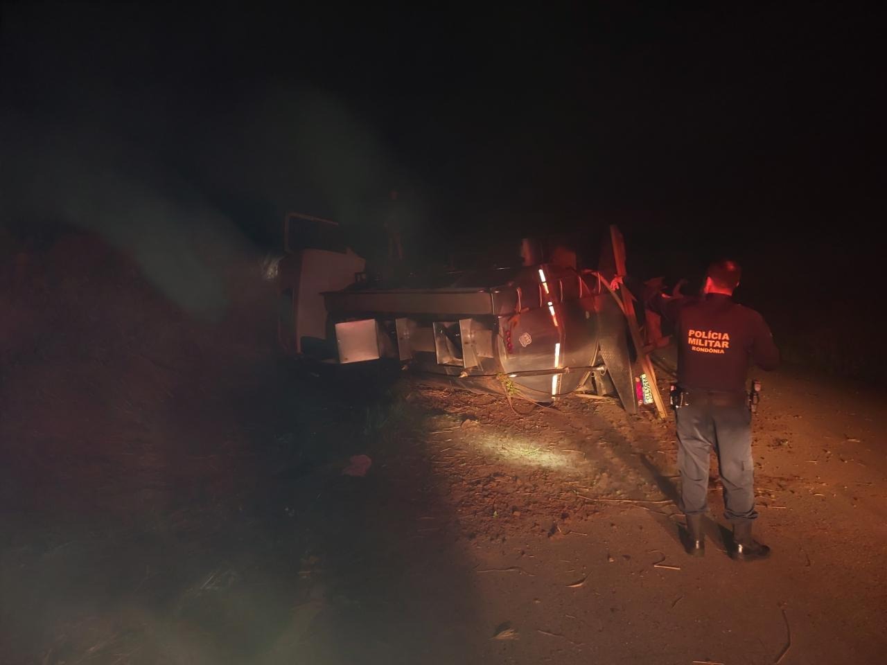 TEIXEIRÓPOLIS, RO – Um sinistro de trânsito envolvendo um caminhão de transporte de leite mobilizou a Polícia Militar na noite do último domingo (26), na rodovia RO-473. O acidente ocorreu no trecho entre os quilômetros 8 e 12, na zona rural do município, resultando no tombamento do veículo e interdição parcial da via.