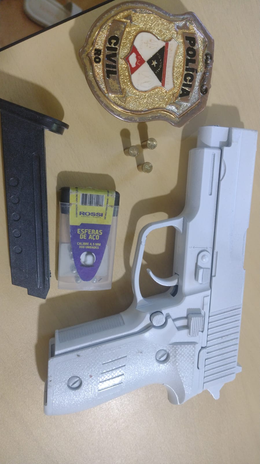 Durante o cumprimento das ordens judiciais, os policiais encontraram munições de arma de fogo deflagradas, além de um simulacro de arma de fogo, que foram apreendidos e encaminhados para os procedimentos legais cabíveis.